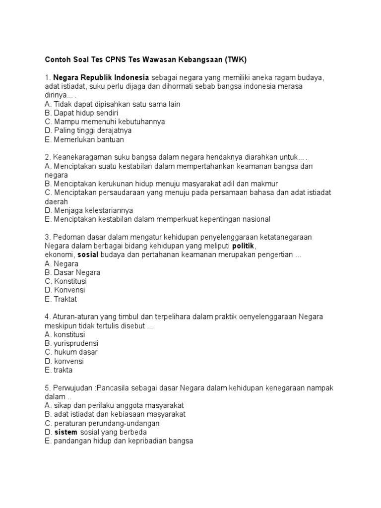 Kami sudah menyediakan paket khusus pdf/ebook soal prediksi smmptn 2019/2020. Contoh soal cpns 2018 pdf wawasan kebangsaan. Contoh soal psikotest rs siloam lowongan kerja terbaru contoh soal tes rs siloam, informasi yang saat ini sedang anda cari yaitu contoh soal psikotest rs siloam dibawah ini telah kami sajikan artikel yang berkaitan dengan contoh soal psikotest rs siloam lulusan smk sma d1 d2 d3 s1 s2 dari. Seperti yang disampaikan sebelumnya bahwa salah satu kelulusan yang harus dicapai adalah tes wawasan kebangsaan yang soal ujiannya meliputi 4 pilar kebangsaan pancasila, uud 1945, bhinneka tunggal ika, dan nkri. Bahkan bisa dimanfaatkan untuk bahan latihan soal online offline tes seleksi utbk sbmptn 2020 2021.
